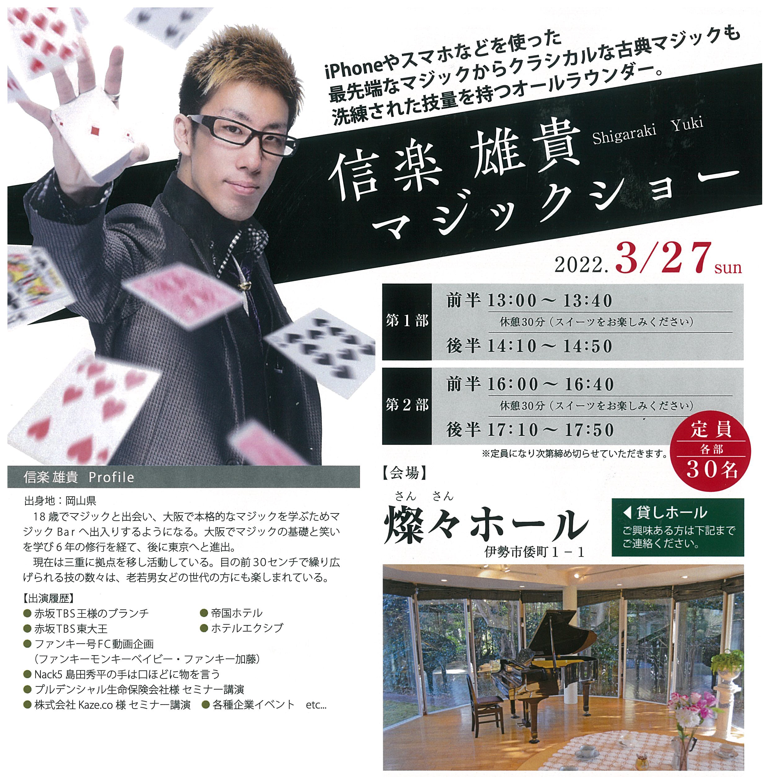 春と秋2回公演で、2022年で11回目となる。地元出身のため、ファンも多い。声に迫力があり、ピアノ伴奏の井上ヒロミさんも素晴らしい