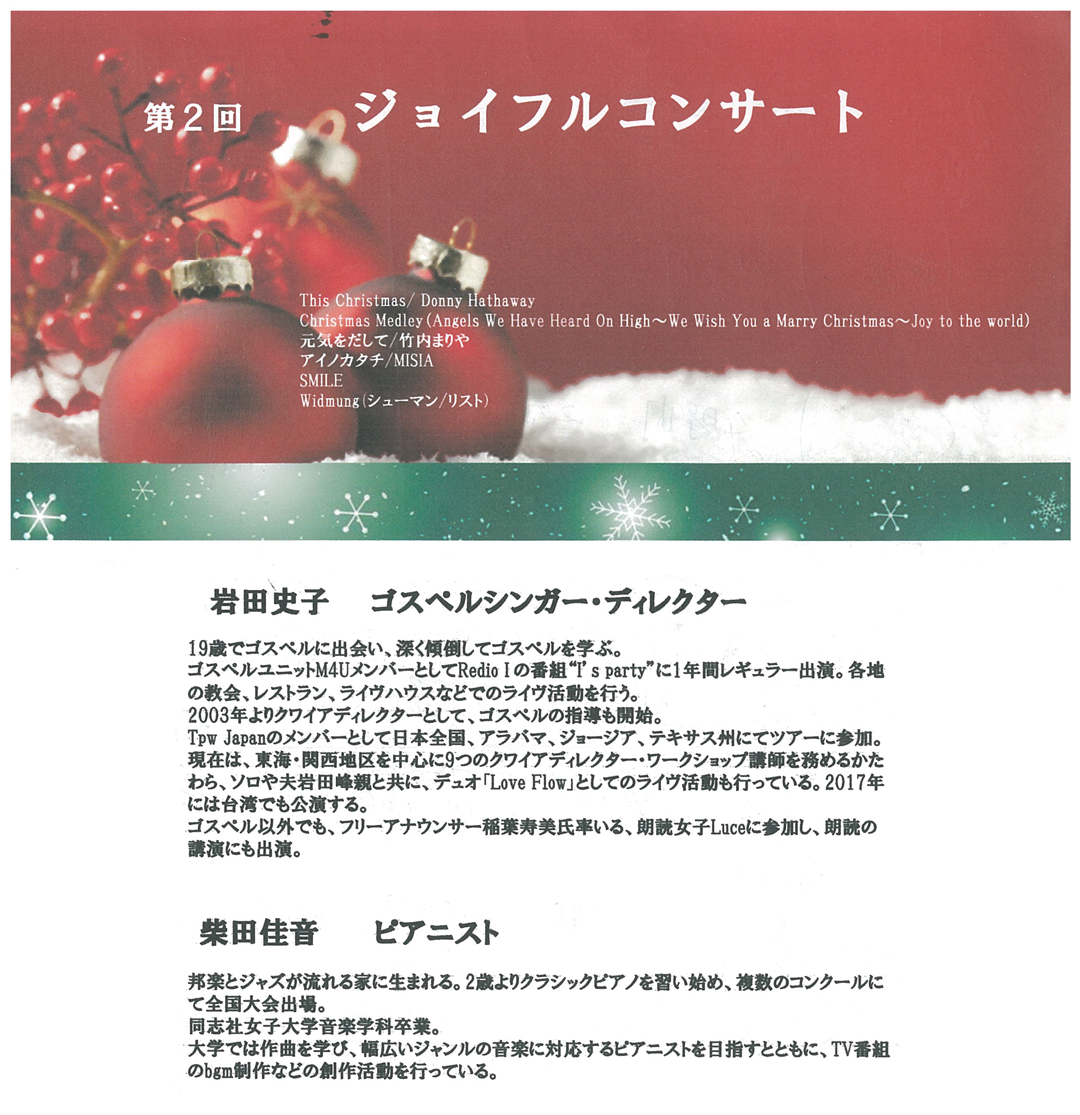 ゴスペルシンガー 岩田史子、ピアニスト 柴田佳音